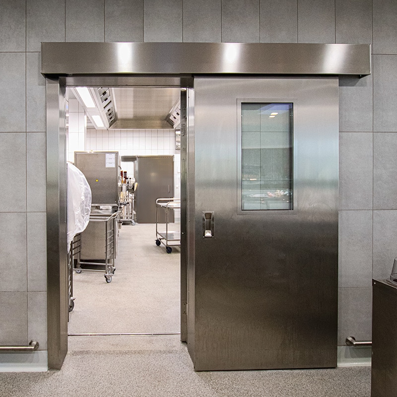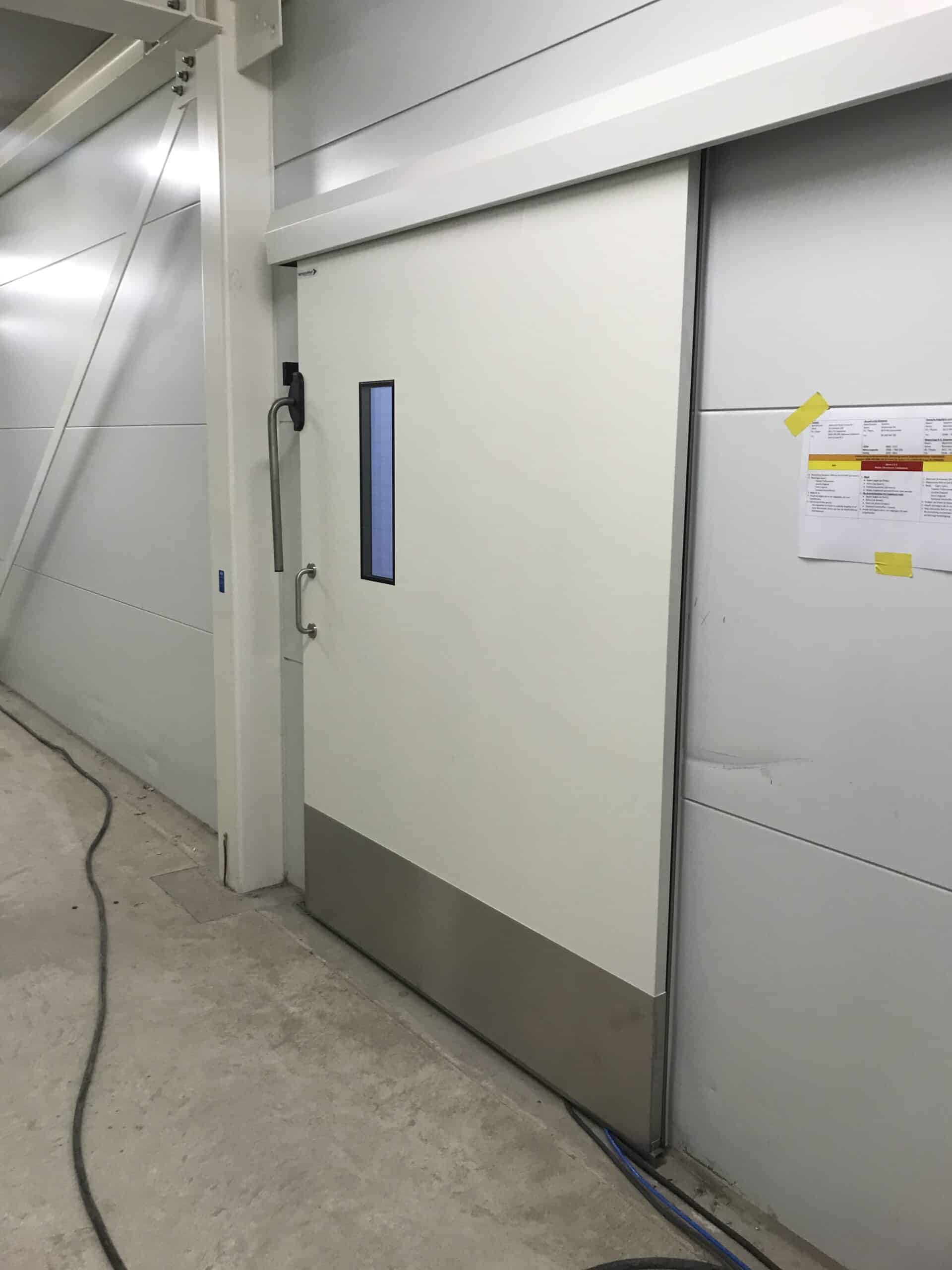 Geïsoleerde schuifdeur voor de Foodsector. Indien het verschil van temperatuur tussen 2 ruimtes gering zijn, dan is dit de ideale deur.