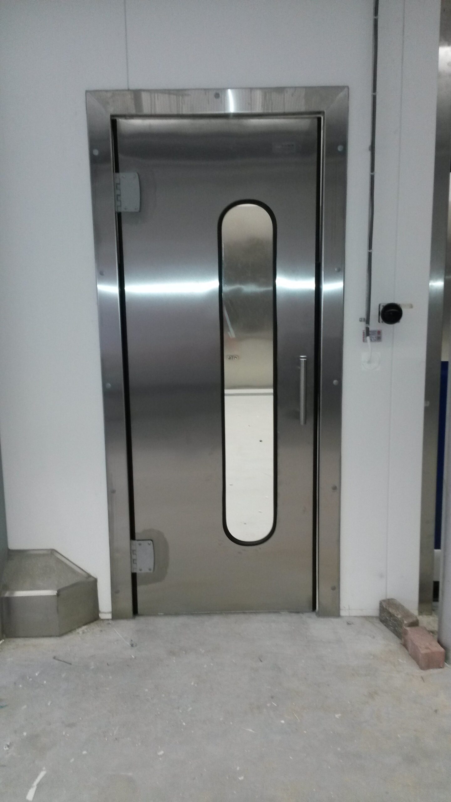 De geïsoleerde klapdeur voldoet aan de hoogste hygiënische eisen. De deur is ontworpen voor de voedingsbranche en wordt vaak met een RVS kozijn geleverd.