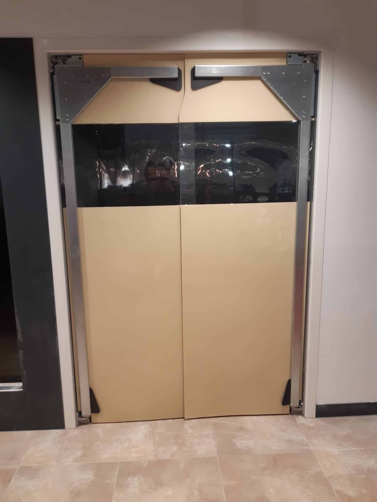 Alle stalen delen worden uitgevoerd in verzinkt staal. In de Foodsector worden de stalen delen in RVS gemaakt. De deuren zijn voorzien van robuuste, tweezijdig werkende veerdrangers. Deze worden in de deurstijl geïntegreerd en zijn van buitenaf instelbaar.