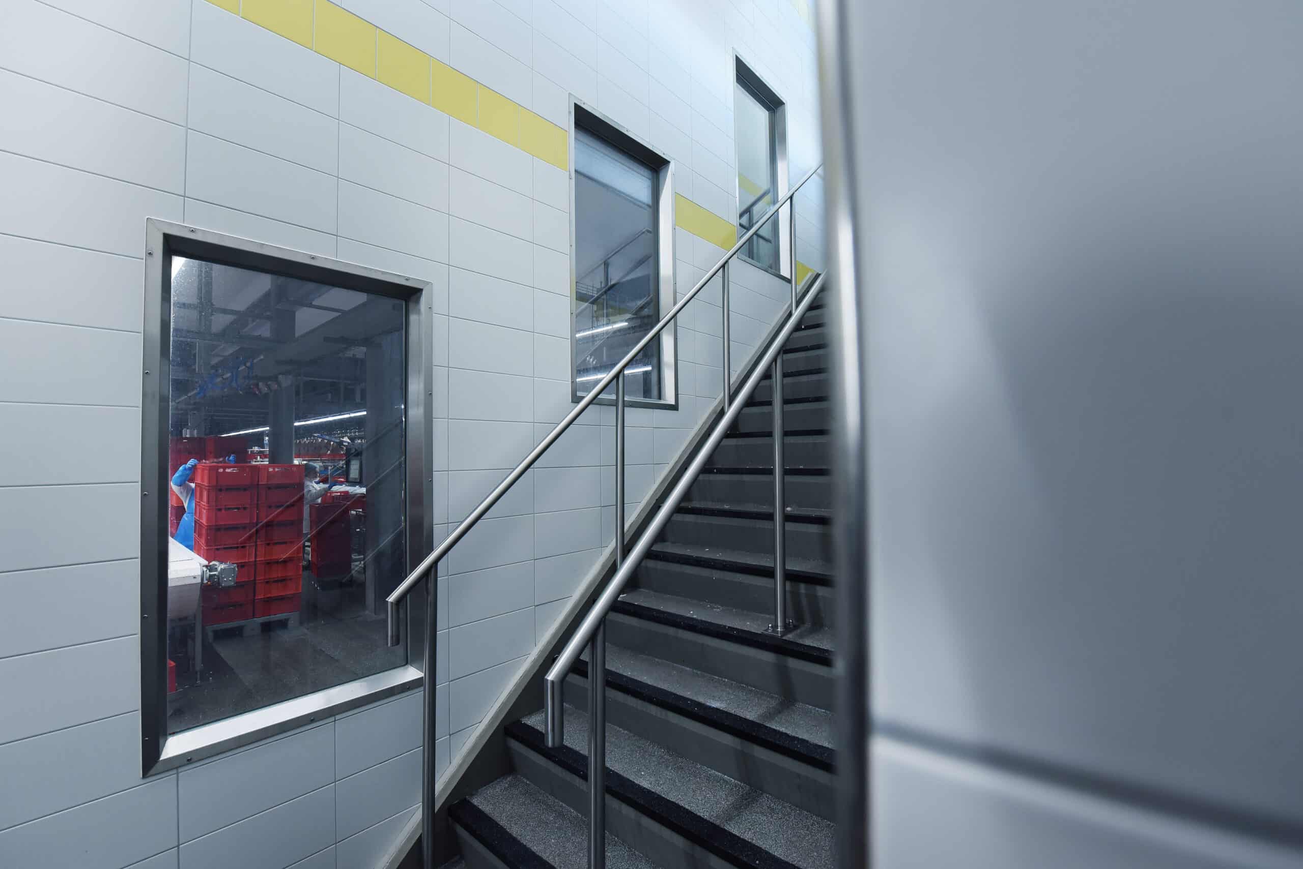 Binnenwanden worden vaak voorzien van RVS ramen om zoveel mogelijk daglicht te ontvangen. Voor de medewerkers zeer prettig om in te werken.