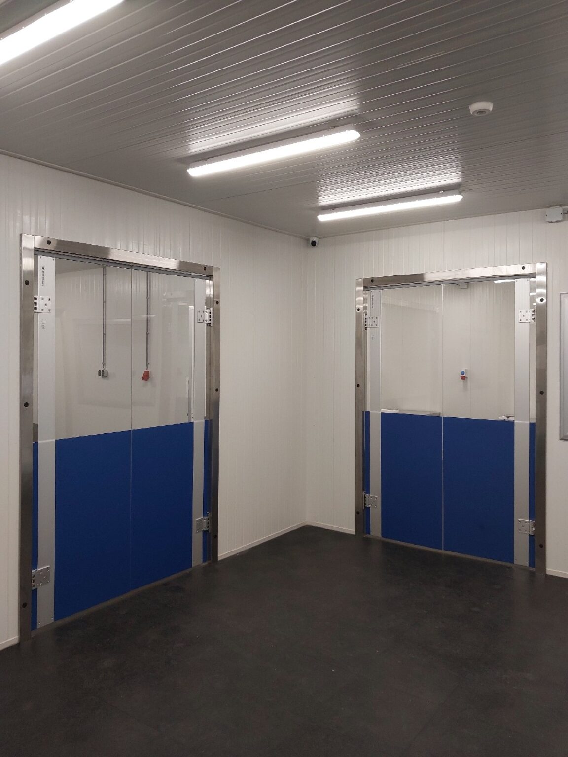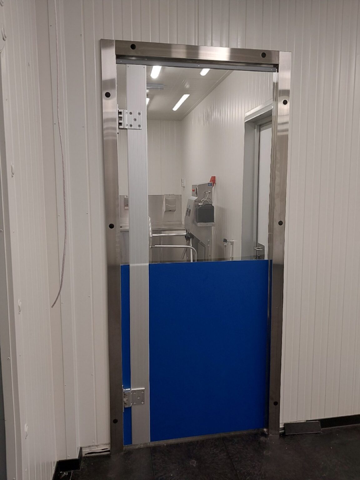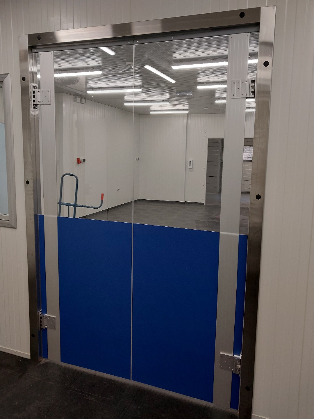 Voor de nieuwe productiehal in Winterswijk mochten wij verschillende polycarbonaat pendeldeuren leveren. Ideaal voor intensief gebruik in de foodbranche en door de zeer grote ramen kun je uitstekend zien wat er aan de andere zijde gebeurd!