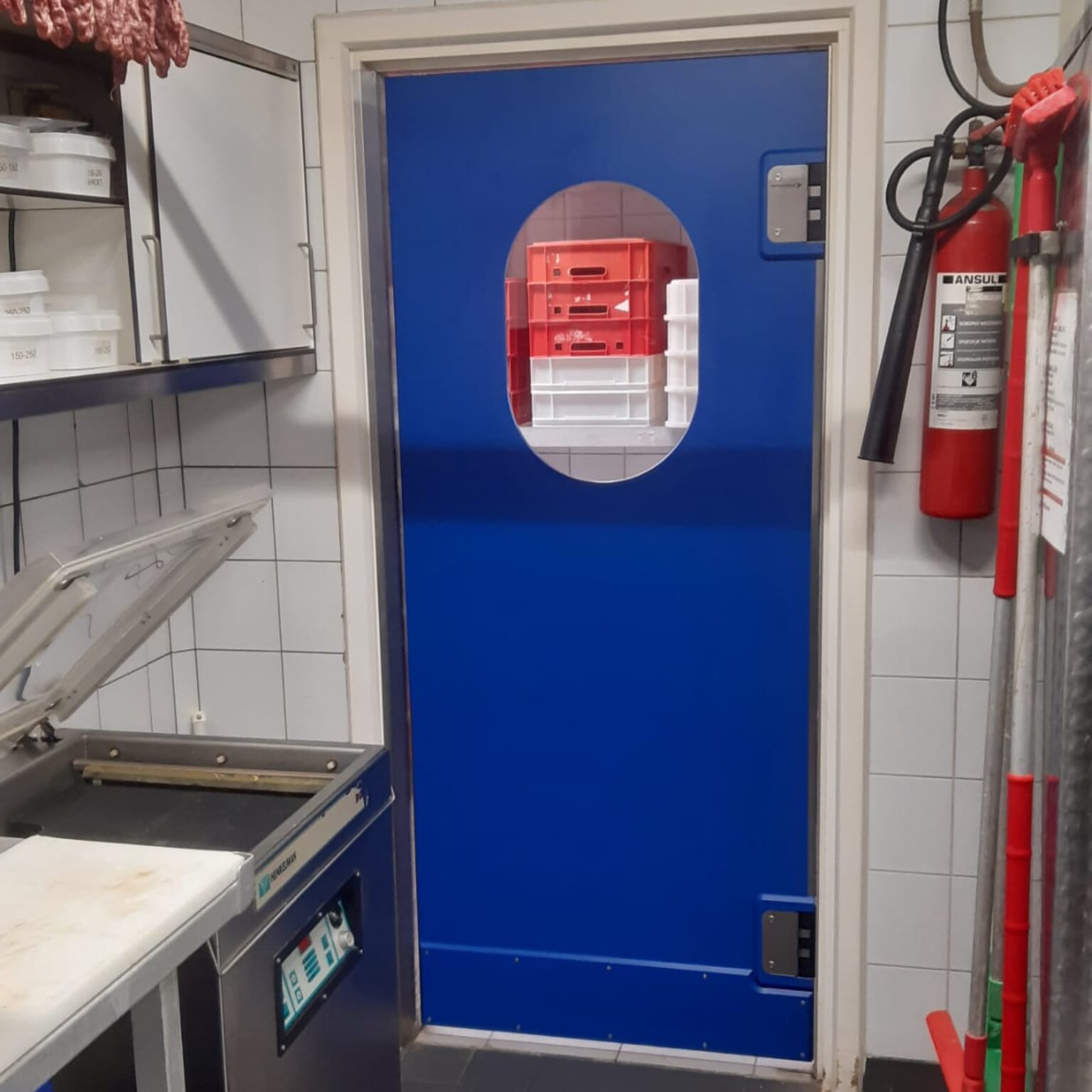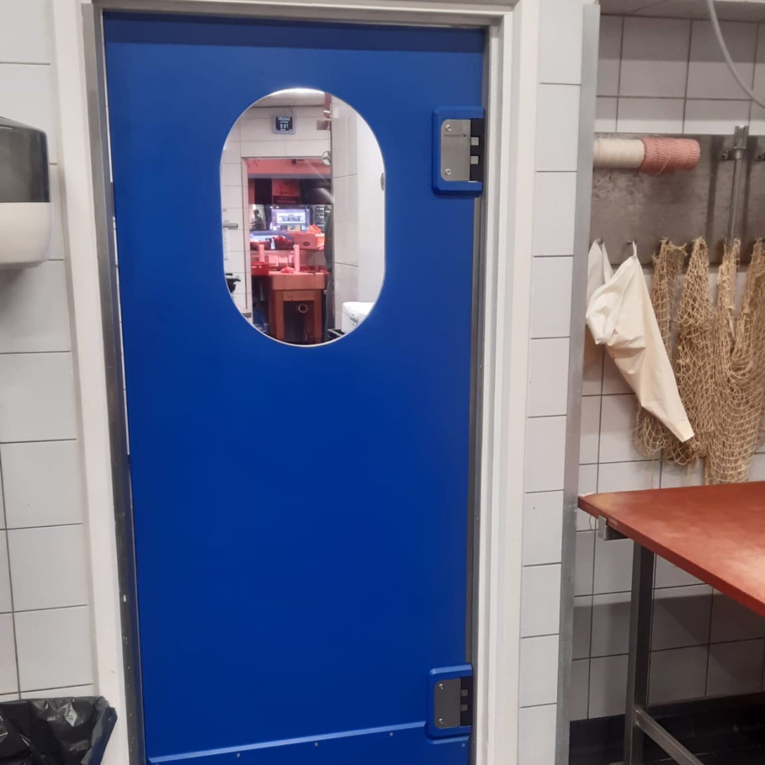 De polyethyleen pendeldeur is een goede keus voor de foodbranche. Het voldoet aan de hoogste hygienische eisen. Zo worden de scharnieren altijd in RVS uitgevoerd. De deurbladen sluiten automatisch na iedere opening en beperken zo warmte- en koudeverlies.