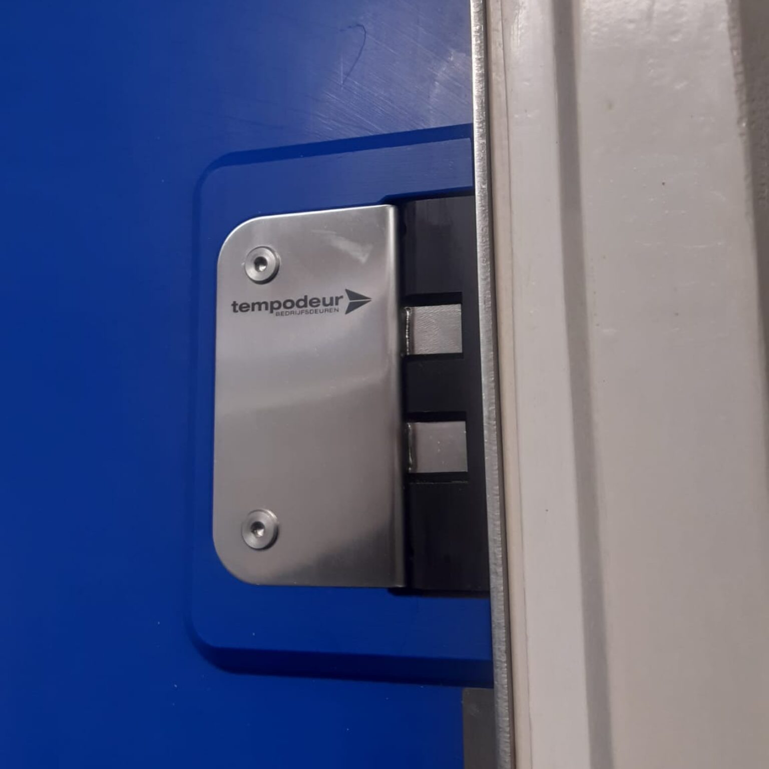 Nadat we met de klant spraken en de huidige situatie bekeken, koos de klant voor een polyethyleen pendeldeur met vlakstrip in de kleur RAL 5010. De nieuwe pendeldeuren werden door onze monteurs geplaatst.