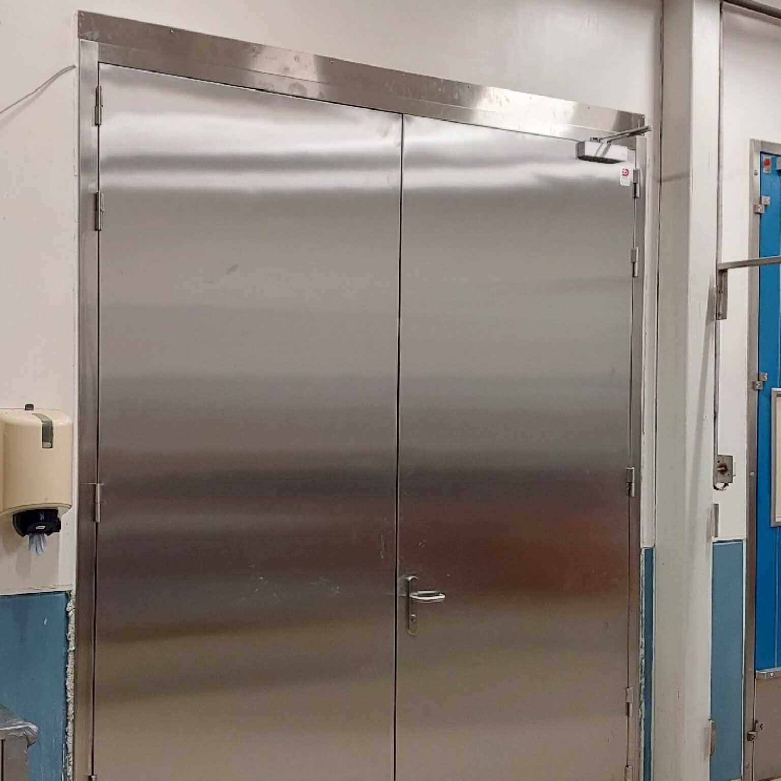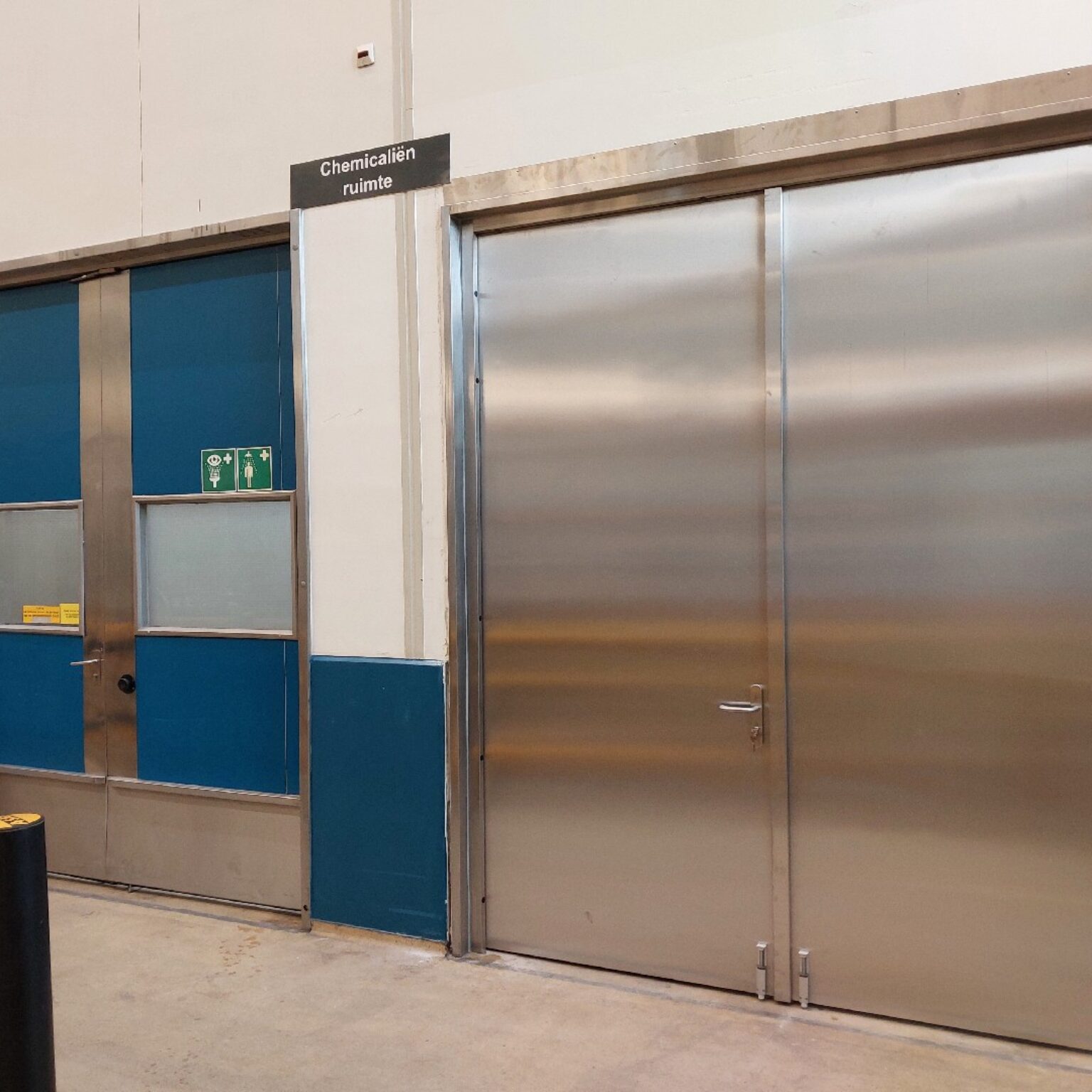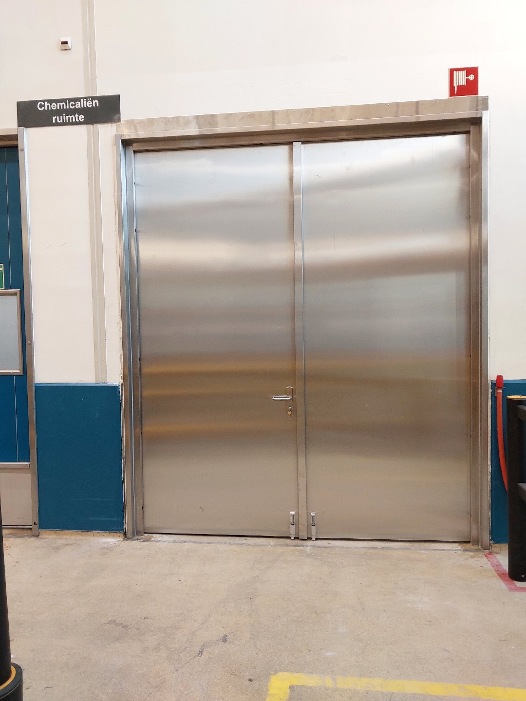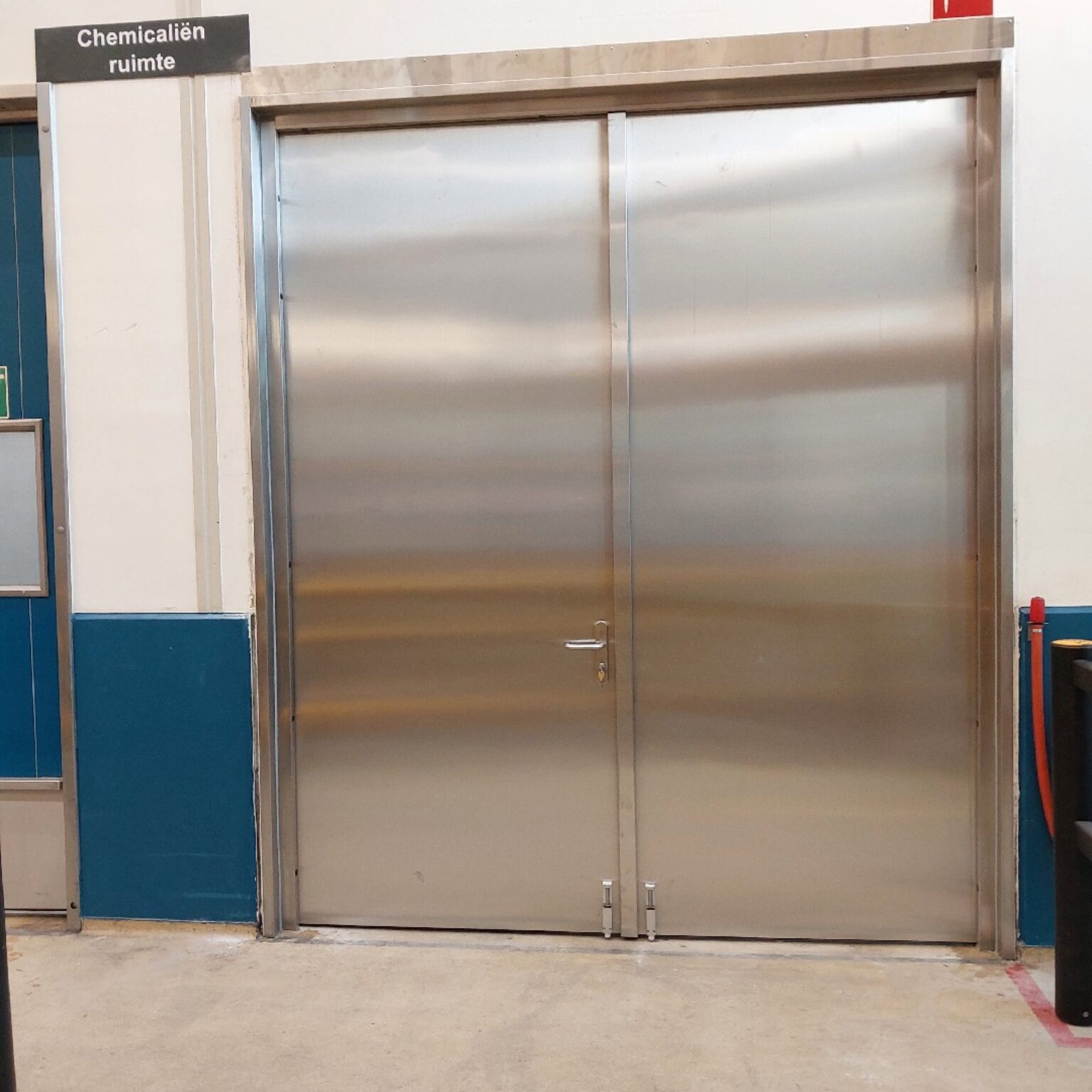 Onlangs hebben wij één van de toegangsdeuren vervangen door een RVS branddeur. Deze deur biedt niet alleen een 60 minuten lange bescherming tegen brand, maar is ook bestand tegen de aantasting door giftige stoffen. Het verschil tussen de oude en nieuwe deur is duidelijk zichtbaar, wat de verbeterde veiligheid en kwaliteit onderstreept.