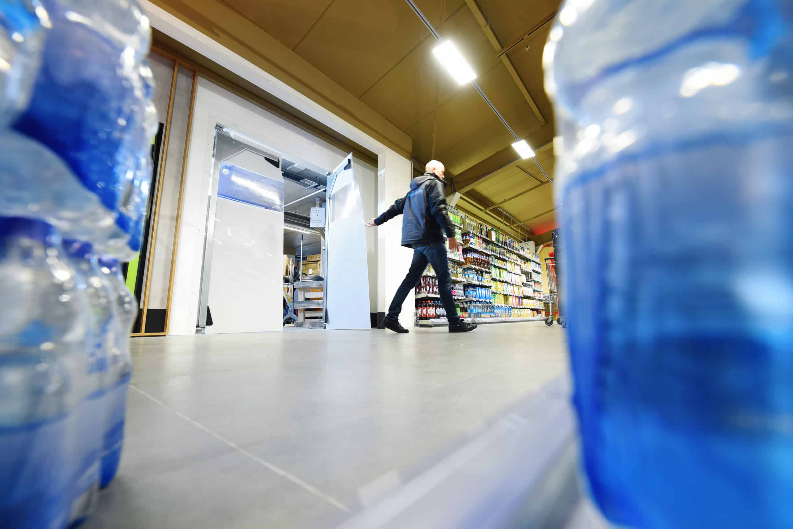 De PLUS was op zoek naar een pendeldeur in PVC-uitvoering, met een bijbehorend, wandomvattend kozijn in de populaire wittint RAL 9010. De supermarktketen gebruikt de pendeldeur als afscheiding tussen de winkel en het magazijn, een toepassing die je vaak terugziet in de retail.
